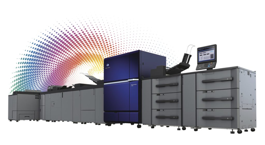 he AccurioPress reduces turnaround times to a new minimum with its finished inline output. The most exciting of these features is booklet making with trimming – finished books, right off the press. Of course it prints full-bleed brochures, postcards, banners, posters, variable data and everything its predecessor did. The maximum print size is 12.5×35.5″. It can fold those trifold brochures, so brochures are finished right off the press. It can also do simple scoring and folding.